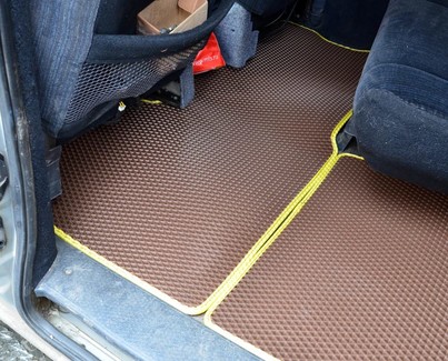 Автоковрики ЕВА не впитывают, а удерживают грязь в ячейках. Вода не катается по полу, как в резиновых половичках, однако, её все равно видно. ЕВА удобны тем, что их легко достать не пролив и вытряхнуть. Они дешевле.