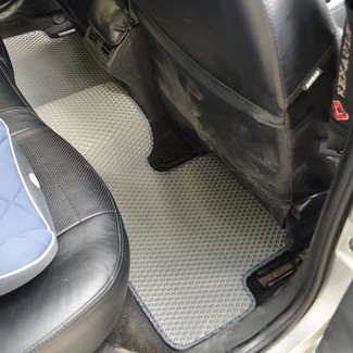 Автоковрики ЕВА не впитывают, а удерживают грязь в ячейках. Вода не катается по полу, как в резиновых половичках, однако, её все равно видно. ЕВА удобны тем, что их легко достать не пролив и вытряхнуть. Они дешевле.