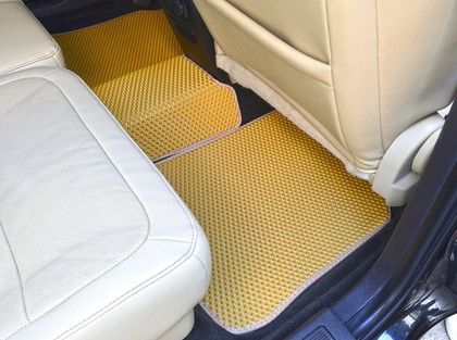 Автоковрики ЕВА не впитывают, а удерживают грязь в ячейках. Вода не катается по полу, как в резиновых половичках, однако, её все равно видно. ЕВА удобны тем, что их легко достать не пролив и вытряхнуть. Они дешевле.
