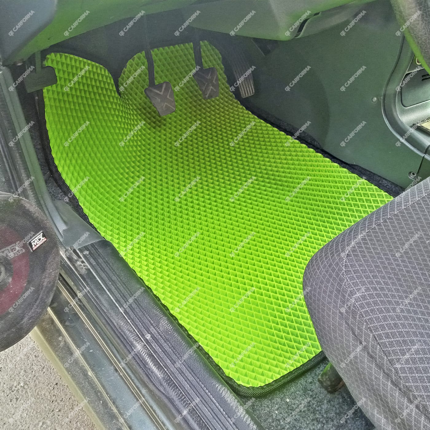 - Передние ковры полностью закрывают место под левую ногу водителя (зависит от авто)