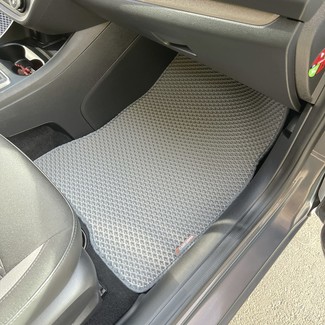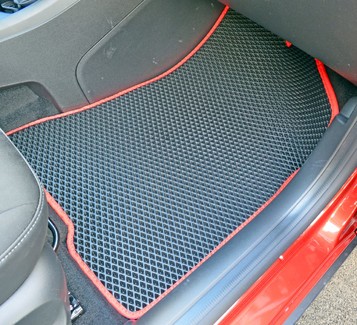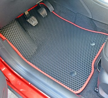 Автоковрики ЕВА не впитывают, а удерживают грязь в ячейках. Вода не катается по полу, как в резиновых половичках, однако, её все равно видно. ЕВА удобны тем, что их легко достать не пролив и вытряхнуть. Они дешевле.
