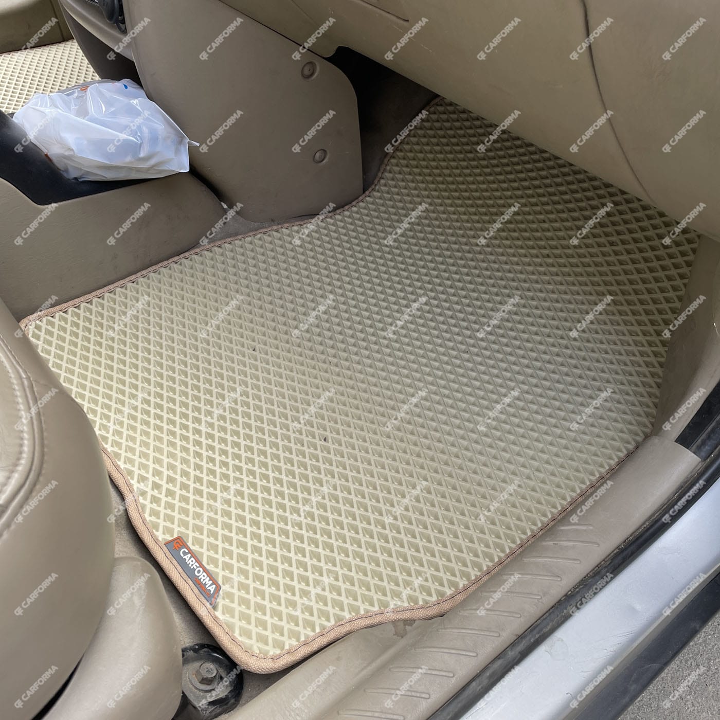 Автоковрики ЕВА не впитывают, а удерживают грязь в ячейках. Вода не катается по полу, как в резиновых половичках, однако, её все равно видно. ЕВА удобны тем, что их легко достать не пролив и вытряхнуть. Они дешевле.